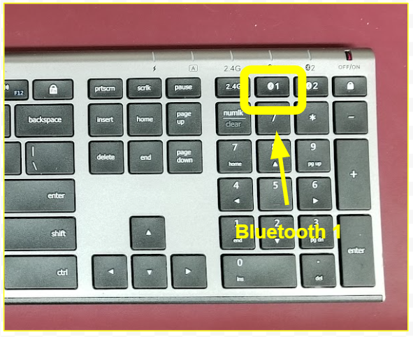 Press the Bluetooth 1 button to reconnect the keyboard to the Mac Mini: