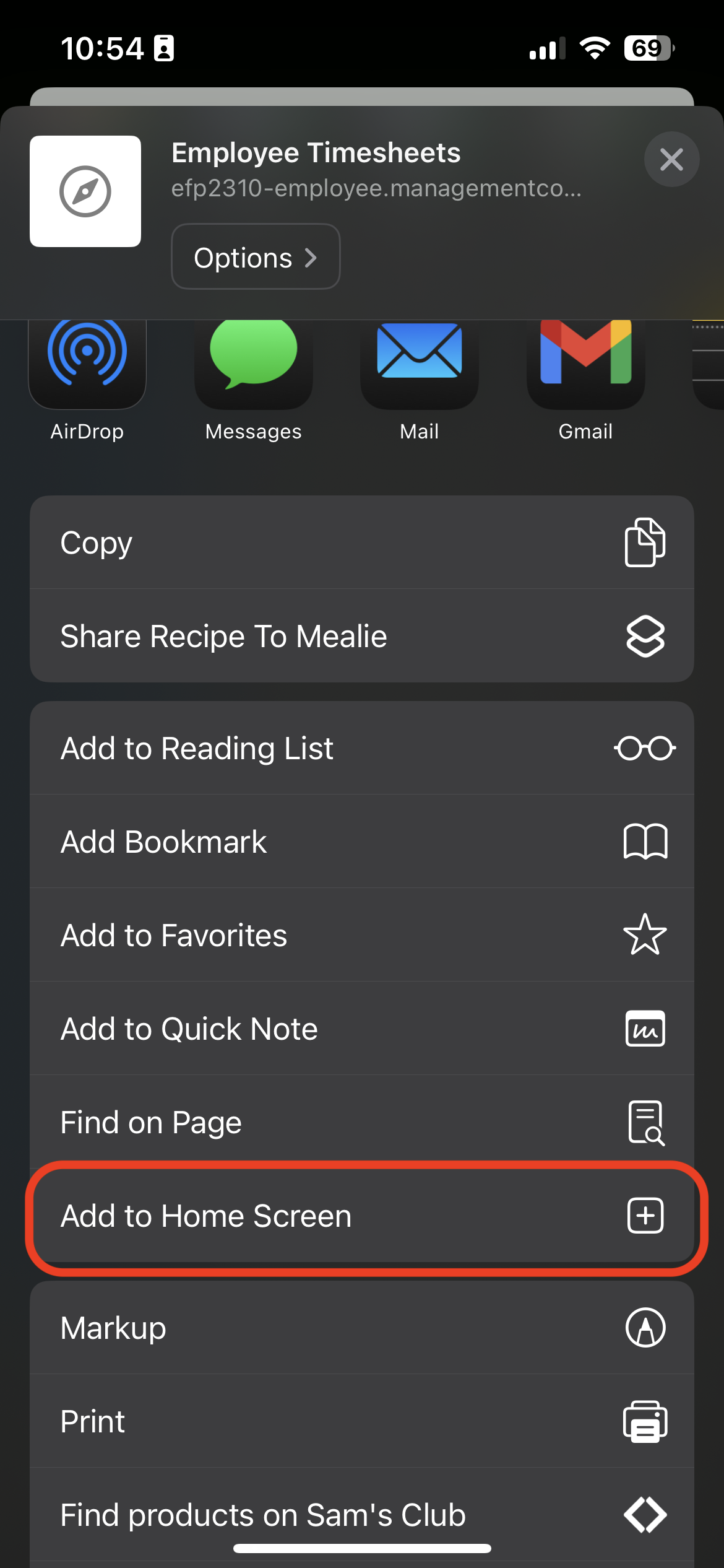 - Click Add to Home Screen