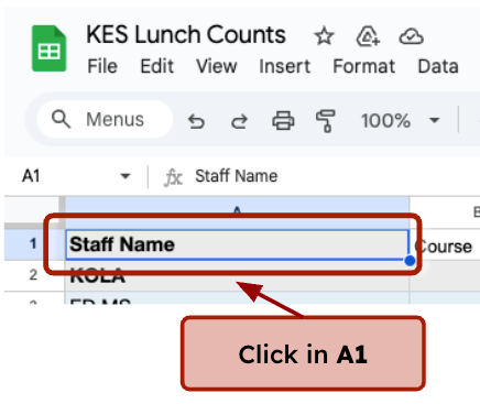 Click in A1: